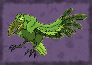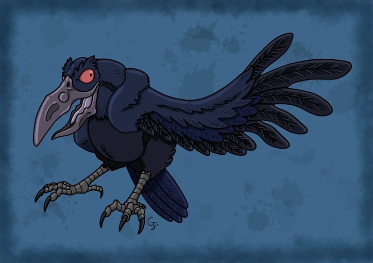 Oiseau sinistre de la famille des corvidés ayant la capacité de parler. On le croise sur les chemins lors des nuits sombres ou des jours de brumes. Cet oiseau fourbe interpelle les gens égarés lors des croisements, les dupant en leur prétendant connaitre la direction de leurs destinations et en leur indiquant un mauvais chemin, souvent dangereux. Il fait cela soit pour le plaisir de tromper les gens, soit parce qu'il est le familier d'un mage ou sorcier mal intentionné, cherchant à attirer les gens dans ses pièges, ou bien encore parce qu'il s'est associé avec d'autres créatures sinistres et malveillantes qui cherchent de nouvelles victimes.