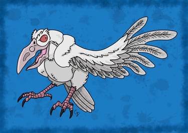 Corbeau malveillant ayant un plumage blanc et se faisant passer pour un oiseau à l'esprit pur. Étant un cousin du corbeau dupeur, il possède lui aussi la faculté de parler, abreuvant les gens ignares de belles paroles et promesses qui les mèneront finalement à leurs pertes ou à la ruine. Il se mêle souvent à des oiseaux de symbole plus pur, dans des milieux baignés de lumière, entrant davantage dans la peau de son personnage aux paroles bienfaitrices.