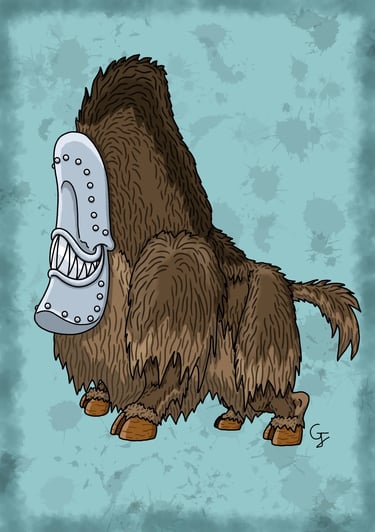 Le Blyzzayack est une créature étonnante. Elle possède un corps de bovidé à fourrure épaisse monté d'une immense bosse dans la nuque et porte une grosse tête allongée munie de mâchoires avec des longues dents tranchantes, le tout entièrement constitué de métal. Dépourvu d'yeux, il se repère grâce aux ondes qu'il détecte dans ses sabots et sa tête de métal. En réalité, seuls les mâles portent une bosse tandis que les femelles n'en ont pas. Cela leur permet de paraître plus impressionnants face à leurs adversaires et de plaire davantage aux femelles. Faisant 1,75 m au garrot, les mâles peuvent atteindre le double de cette taille avec leur bosse. Ces créatures vivent en troupeau pouvant aller de 12 à 125 têtes qui sont toutes dirigées par un ou deux mâles dominants. Les jeunes mâles doivent se soumettre ou bien quitter le troupeau pour en créer ou en rejoindre un autre. Dans ce dernier cas, il doit chasser le ou les mâles dominants pour en faire partie. Ces bêtes sont omnivores, mais aussi cannibales. En effet, les mâles dominants sont capables de tuer, voire de dévorer les petits qui ne sont pas les leurs. Les adultes sont aussi capables de manger leurs petits en cas de famine pour survivre. Quand deux troupeaux se rencontrent, le ou les mâles dominants s'affrontent, voire s'entretuent pour savoir qui aura accès au terrain. Si le ou les dominants d'un troupeau meurent, les membres du troupeau perdants choisissent s'ils veulent rejoindre l'autre troupeau, ou s'ils choisissent un nouveau mâle dominant. Ceux des créatures que l'on rencontre dans les régions froides et sèches que sont les toundras, se déplacent d'une contrée à une autre. C'est une créature ancestrale qui s'est diversifiée avec le temps et a atteint de nouvelles terres au fil des millénaires.