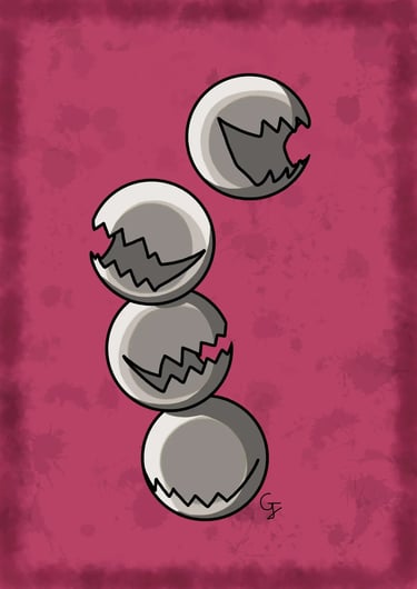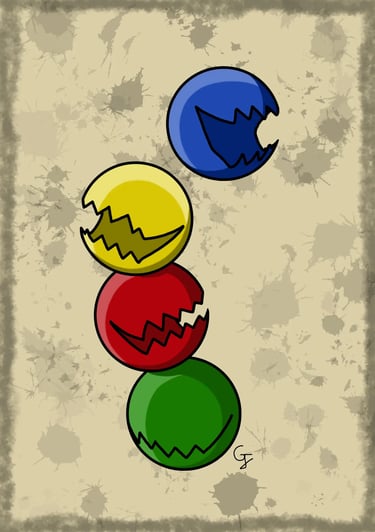 Quatuor de monstres de matière similaire à celui d'une balle qu'utilisent les enfants pour s'amuser, ayant le corps creux et chacun une couleur différente. D'une taille individuelle de 30 cm de diamètre, ils sont souvent à se monter les uns par-dessus les autres pour ressembler à une colonne et pour paraître plus menaçants face aux autres créatures. Ils se nourrissent de balles de la même matière qu'eux, mais peuvent aussi croquer la main de ceux qui essayent de les approcher, ne laissant heureusement pas de blessures profondes ni sanglantes, mais tout de même une bonne douleur désagréable. Ces monstres turbulents mais non dangereux peuvent être croisés dans divers lieux civilisés, en particulier dans les gymnases dans lesquels ils se dissimulent dans les caisses dans lesquelles sont rangés les ballons, pour les manger au fur et à mesure, et pourquoi pas croquer une main qui voudrait se servir au passage.