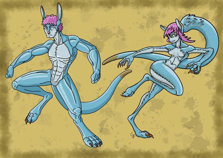 Créature féminine australienne ayant des similitudes avec les faunes et les amazones. Leur apparence physique rappelant les faunes et leur caractère sauvage et combatif faisant penser aux amazones. Elles vivent dans les plaines reculées, loin de la civilisation humaine. Elles sont exclusivement végétariennes et se nourrissent d'herbes comme les kangourous, mais aussi de racines, qu'elles déterrent grâce à leurs griffes très solides et puissantes. Elles vivent en communauté et se déplacent régulièrement à la manière des kangourous. Comme ces derniers, elles ont de puissantes pattes arrière, pouvant placer de puissants coups. Combiné à leurs techniques de combats martiaux, elles peuvent devenir des adversaires redoutables. Aucuns mâles ne vivent avec elles, car ils sont chassés de la communauté dès leur plus jeune âge et formes des groupes moins importants constitués seulement de mâles. Certains d'entre eux peuvent errer comme des solitaires et ces derniers sont en principe plus fort que les autres, leur permettant de se défendre contre les ennemis et prédateurs. Se sont souvent eux que les femelles choisissent comme géniteur. Pour être sûr d'avoir de puissantes descendantes.