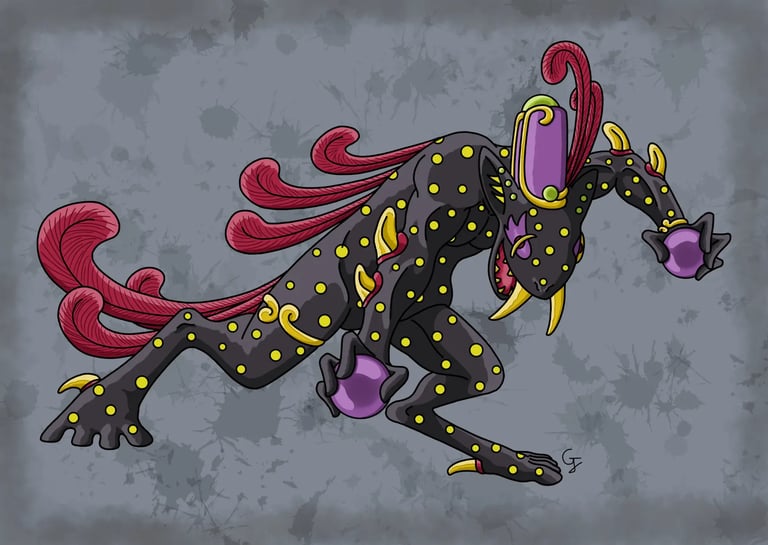 Dieu mineur qui, malgré son aspect sinistre, est en réalité un être bienveillant. Son corps est noir comme l'obscurité tout en étant parsemé de nombreux points lumineux comme des étoiles dans la nuit. Il possède également de longues plumes d'un pourpre profond. Comme son nom l'indique, il est capable de créer des sphères d'ombres petites et rapides qui peuvent suivre ses cibles comme une tête chercheuse. Il peut aussi créer une énorme sphère d'ombre très puissante qui ravage tout autour d'elle ou bien encore en créer une qui s'élève dans le ciel et obscurcit le soleil telle une éclipse, plongeant le ciel dans les ténèbres. Vivant dans le monde obscur et ne sortant que la nuit, cet être de quatre mètres de haut est capable d'étendre son corps dans le ciel comme un grand voile qui peut envelopper une très grande zone dans laquelle il peut matérialiser son corps d'origine pour combattre les adversaires emprisonnés à l'intérieur. Comme cité au début, c'est un être bienveillant qui, lorsqu'il est de sortie la nuit dans le royaume des cieux, guide à l'aide des étoiles les personnes qui sont égarées afin qu'elles retrouvent leur chemin. Il veille aussi sur les personnes en les protégeant des maléfices des ombres grâce à l'aide d'un talisman à son effigie ou bien de celle d'une de ses plumes dans une moindre mesure.