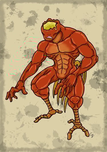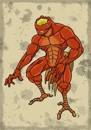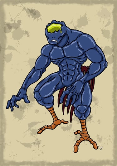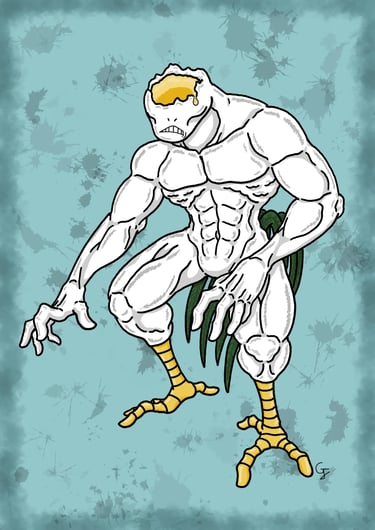Créature étrange à l'aspect humanoïde étant à l'origine un simple œuf de poule. Mesurant entre 1,60 m et 1,73 m de haut, ces créatures prennent vit grâce à un œuf de poule corrompu par de la magie, qui s'anime et mute par la suite, jusqu'à rapidement atteindre cette apparence. L'œuf doit cependant contenir l'embryon d'un coq et non d'une poule pour que le processus s'active. Le processus de mutation se passe pendant la nuit et se termine en quelques heures. Ces créatures sont souvent créées par des sorciers en herbes qui cherchent des serviteurs obéissants et qui n'ont pas de besoins, même si leur espérance de vie ne dépasse pas quelques mois. Ils peuvent en créer facilement avec quelques poules, un coq pour les féconder et un poulailler. Ne possédant pas la parole et d'un tempérament querelleur envers ces semblables, sans doute à cause de l'embryon de coq, ils sont continuellement à se chamailler pour pas grand choses, au grand désarroi de son maître. Leur corps est étonnamment souple, malgré qu'il soit enveloppé d'une coquille d'œuf résistante, similaire à un œuf de tortue ou de serpent. Le jaune et le blanc d'œuf qui le compose, ajouter à de la magie, s'est mélangé pour donner un liquide faisant office de sang et d'organe. Pouvant aussi servir de soldat de bas niveau, son principal point faible est son crâne ouvert que l'on retrouve chez tous les individus, (même si on ignore pourquoi) par lequel son liquide vital peut s'échapper si ont le cloue par terre. Il peut aussi hêtre transpercer par une arme est se vider de son liquide, comme n'importe quelle créature constituée de sang. Il est également très sensible au feu, qui le cuit comme un œuf et l'immobilise.